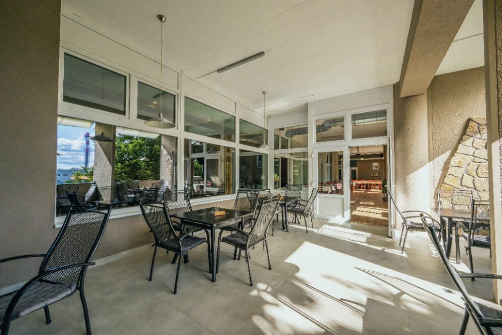 - Celoročně otevřená, zakrytá terasa s kapacitou 26 míst